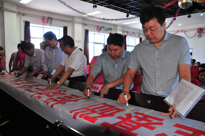 参会人员在“强化安全基础,推动安全发展,全面推行标准化”条幅上签字